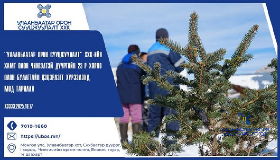 Чингэлтэй дүүргийн 23-р хорооны Олон булагтайн цэцэрлэгт хүрээлэнд “Тэрбум мод” үндэсний хөдөлгөөний хүрээнд Улаанбаатар орон сууцжуулалт ХХК-ийн ажилтан, албан хаагчид 50 ширхэг гацуур мод тарилаа.