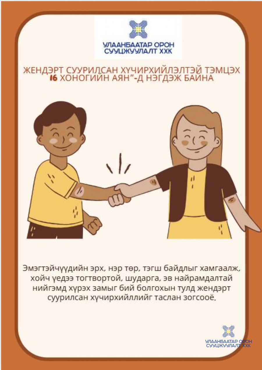 ЖЕНДЭРТ СУУРИЛСАН ХҮЧИРХИЙЛЭЛТЭЙ ТЭМЦЭХ 16 ХОНОГИЙН АЯНД "УЛААНБААТАР ОРОН СУУЦЖУУЛАЛТ" ХХК НЭГДЭЖ БАЙНА