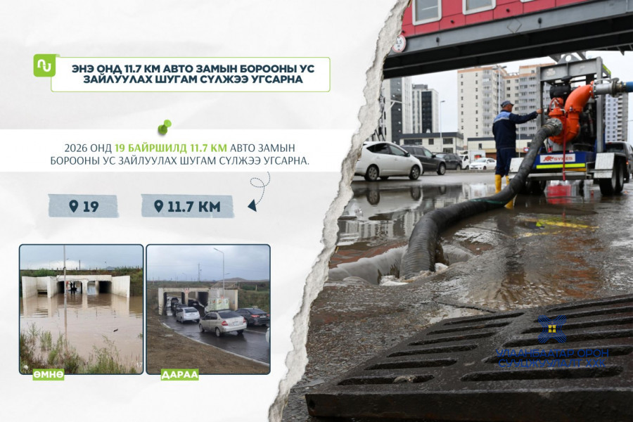 Нийслэлийн зургаан дүүргийн авто замын борооны болон хөрсний ус зайлуулах 217 км шугам сүлжээний 4034 шүүрт худаг, 4171 ширхэг үзлэгийн худгийн лаг цэвэрлэгээний ажлуудыг тус тус хийж гүйцэтгэнэ.