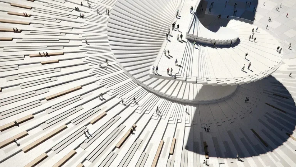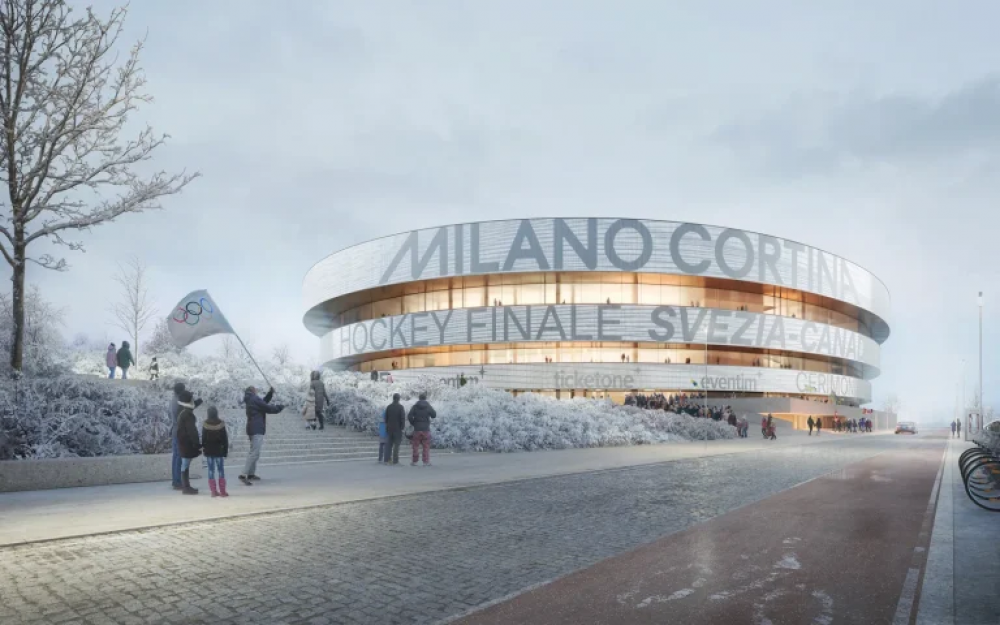 2026 оны Өвлийн олимпийн наадамд зориулан баригдаж буй 16,000 хүний багтаамжтай олон зориулалтаар ашиглах аренa. David Chipperfield Architects-ийн зураг төсөл нь тогтвортой хөгжлийн зарчимд тулгуурласан.